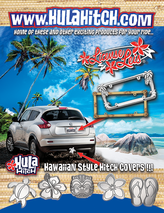 Aloha and welcome to HULA HITCH, home of the ultimate "Live Aloha" auto accessories. We have created a finely tuned lifestyle brand that focuses on transferring the essence of a Laid Back Island State of Mind to everday life. What better way to slip into a laid-back Island state of mind than to accessorize the vehicles we spend so much time with?
